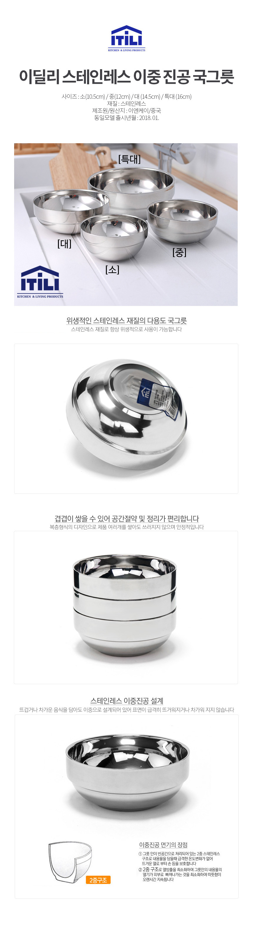 이딜리 스테인레스 이중 진공 국그릇 특대