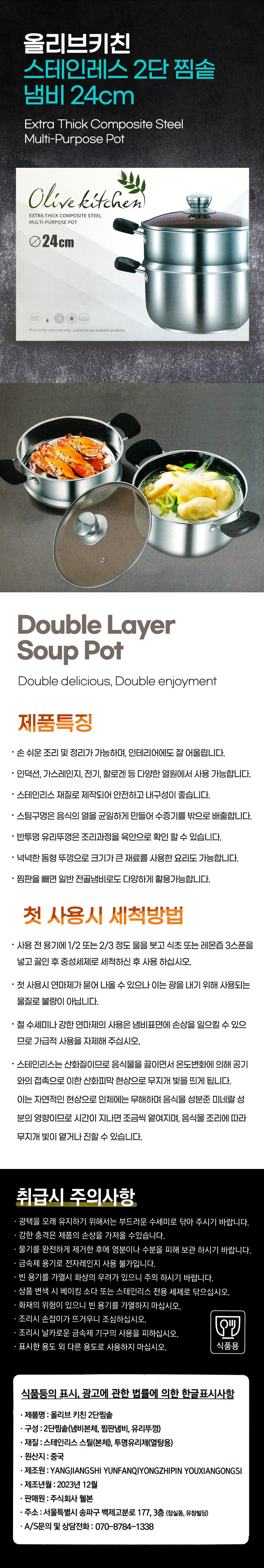 올리브키친 스테인레스 2단 찜솥 냄비 24cm
