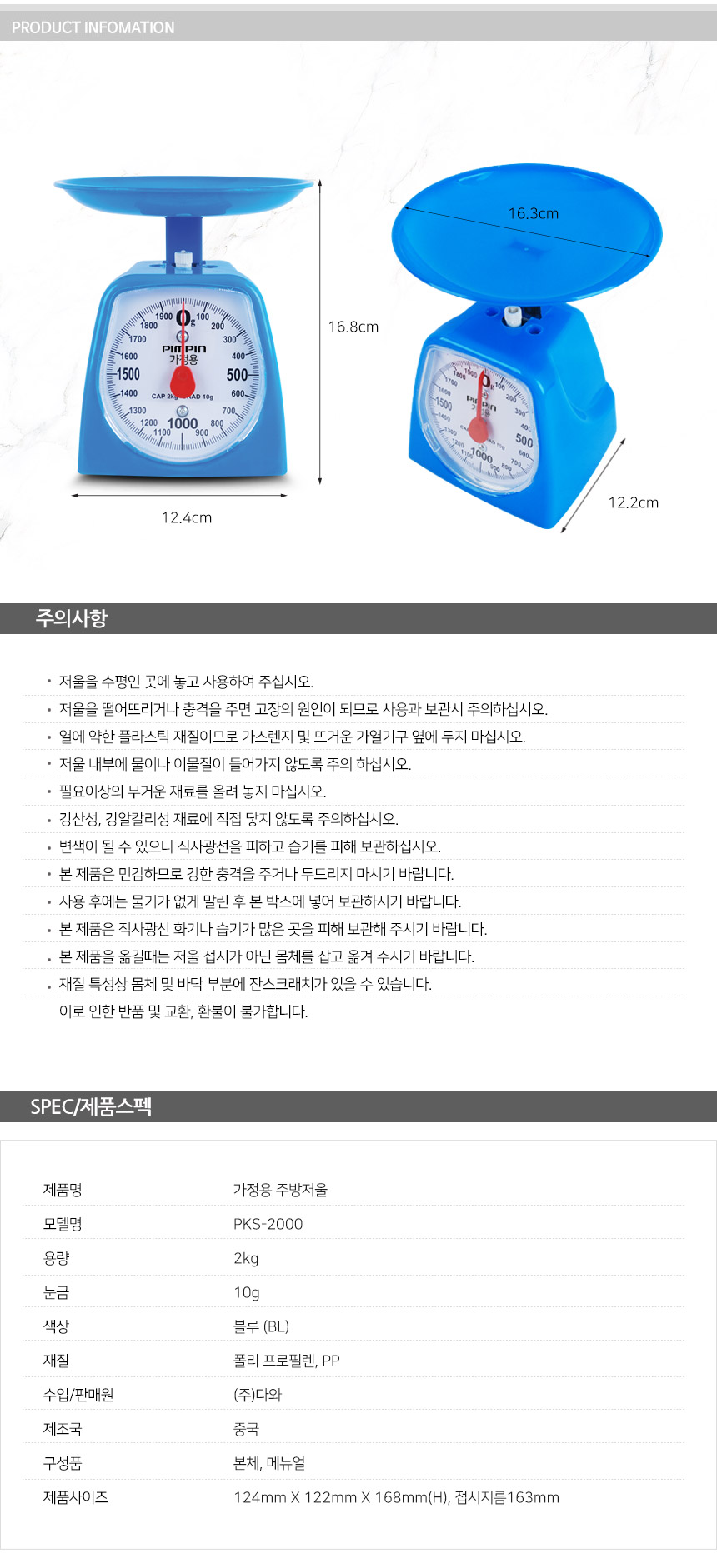 정밀계량저울 PKS-2000 주방저울 2kg 홈베이킹