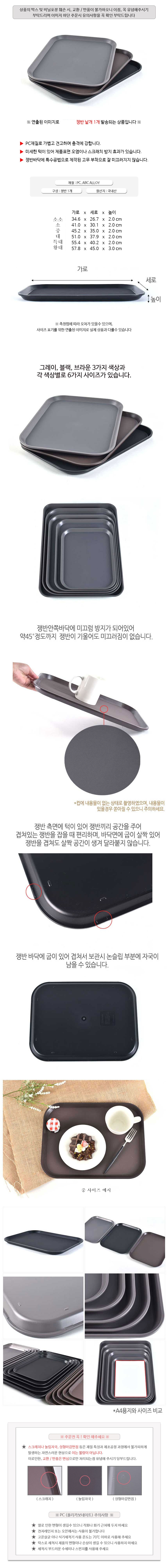 논슬립 사각 쟁반 카페용품 베이커리 안미끄러운 트레이 3색상 6사이즈