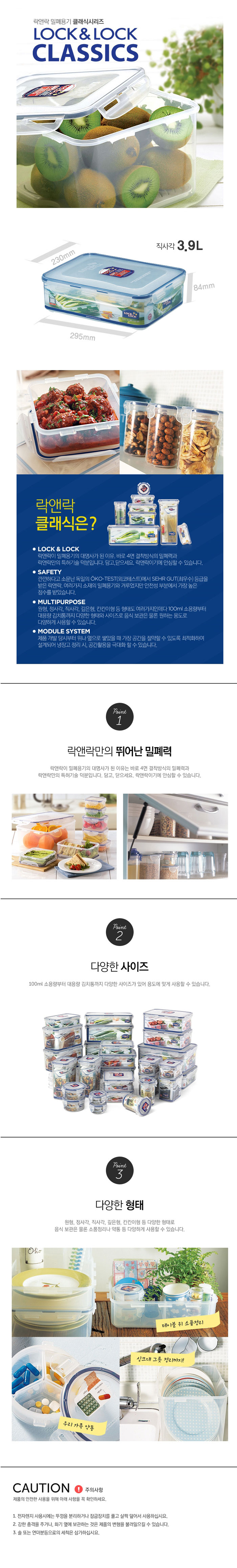 락앤락 HPL834 클래식 밀폐용기 직사각 3.9L
