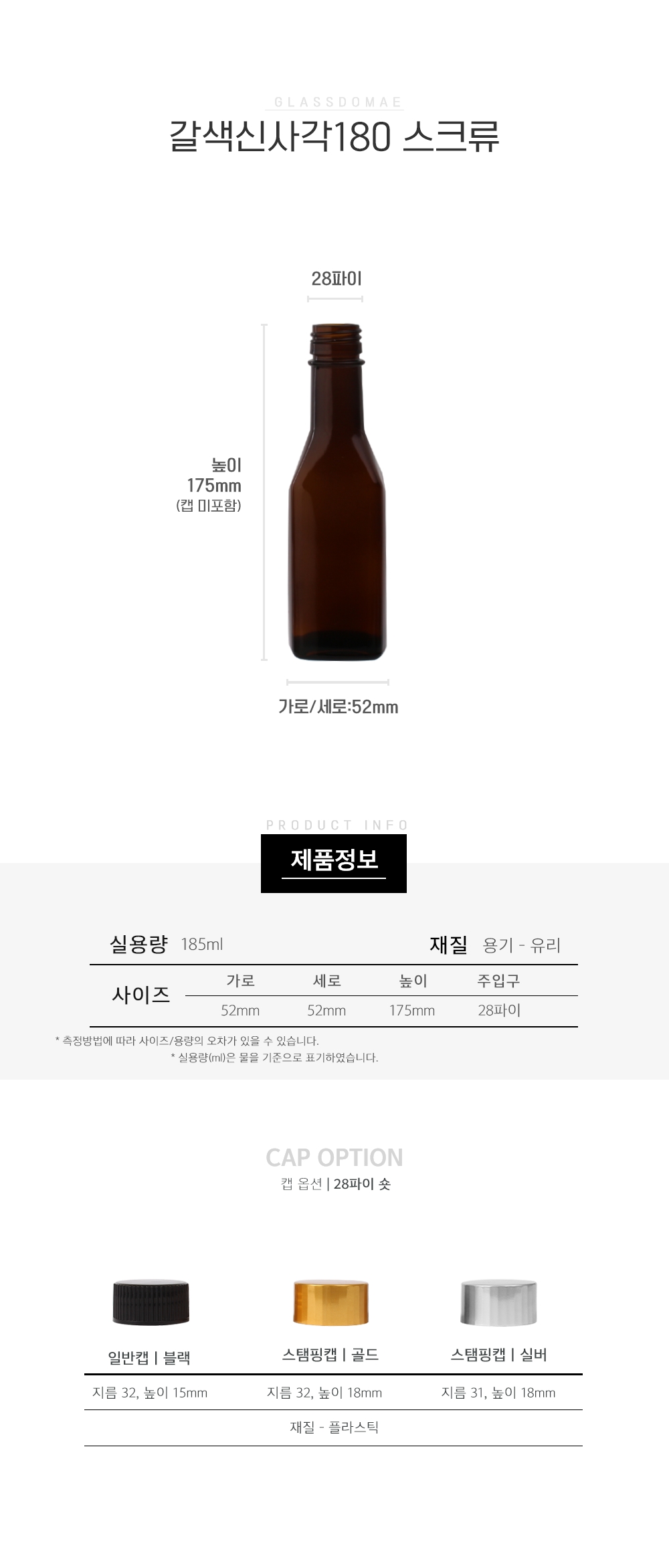 갈색사각오일180 스크류 180ml 낱개 오일병 기름병 참기름 들기름 갈색사각오일180스크류