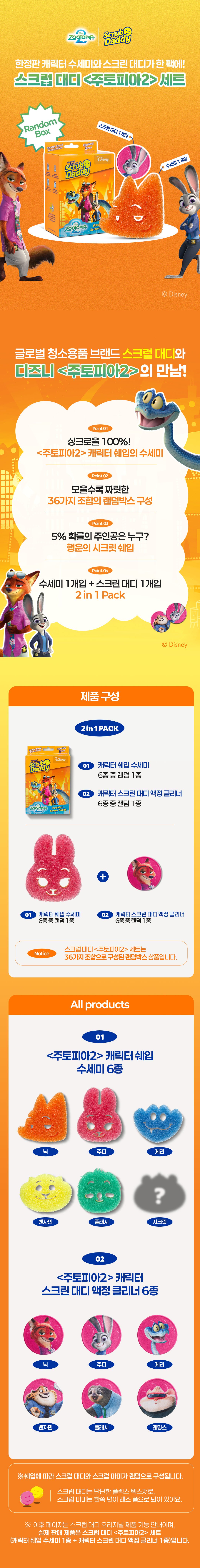 스크럽대디X주토피아2 세트 한정판 캐릭터 수세미 스크린 대디 (산본점)