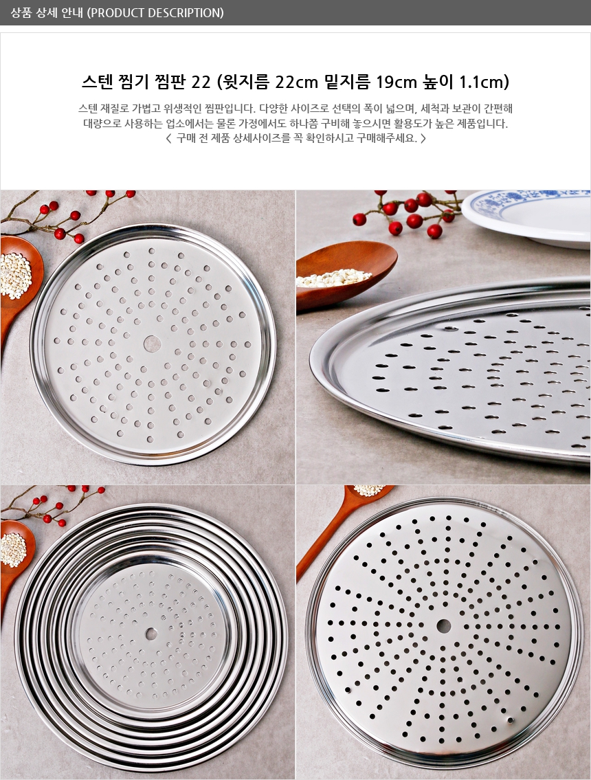스텐 찜기 찜판 22 찜솥 찜망 이유식 수육 보쌈 감자 고구마 옥수수 찜채반 찜받침