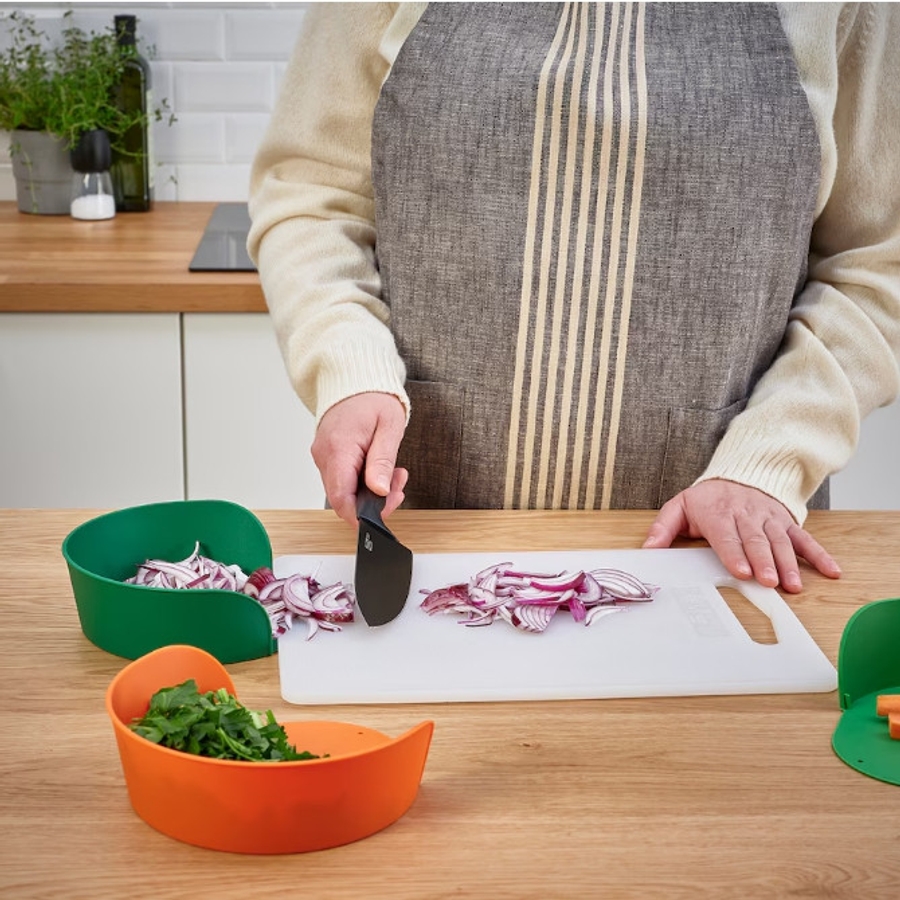 UPPFYLLD 웁퓔드 그릇은 조리대와 도마를 정리하면서 음식을 준비해야 할 때 사용하기 좋습니다.