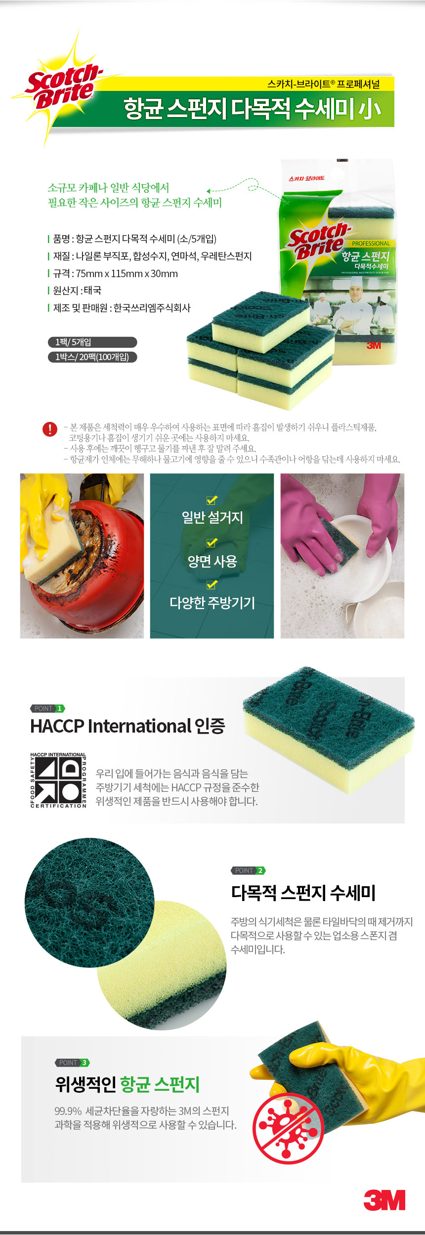 3M 항균 스펀지 다목적 수세미 소형 5개입