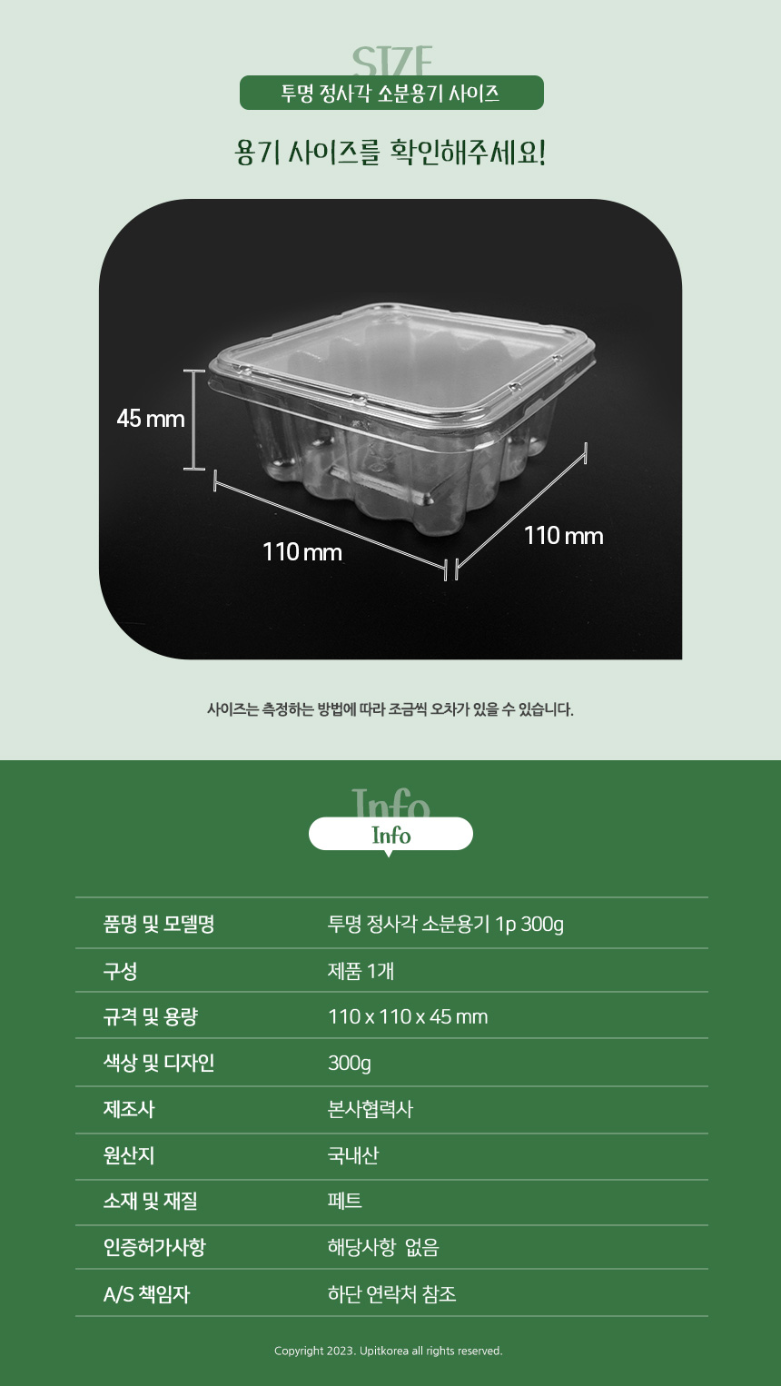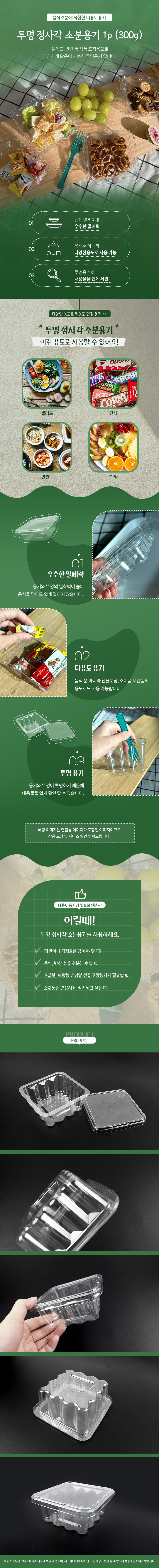 플라스틱 투명 정사각 소분용기 뚜껑포함 정리보관 300g