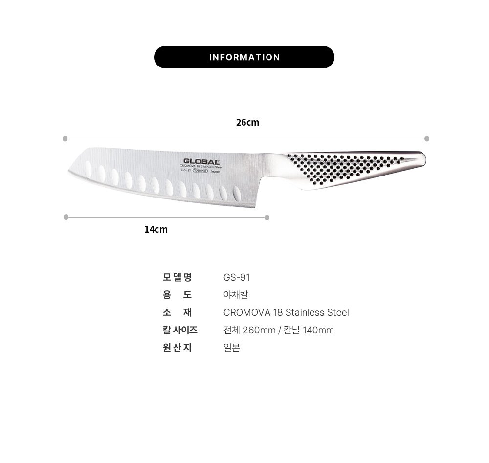 (글로벌나이프)(대구신세계)글로벌나이프 채소나이프 딤플 14cm GS-91