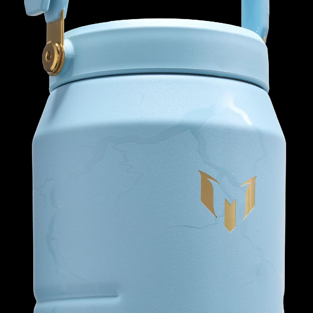 메시 × 스탠리 콜렉션(Striker Blue)은 프리미엄 골드 피니시 위에 라이트닝 볼트(번개) 엠보싱을 더해 존재감을 살렸습니다. 64온스(대용량)로 리필 횟수를 줄이고 하루 종일 수분 보충! 뚜껑을 플립-업하면 빨대로 바로 마실 수 있어, 그라운드 안팎에서 집중력을 유지해 줍니다.
