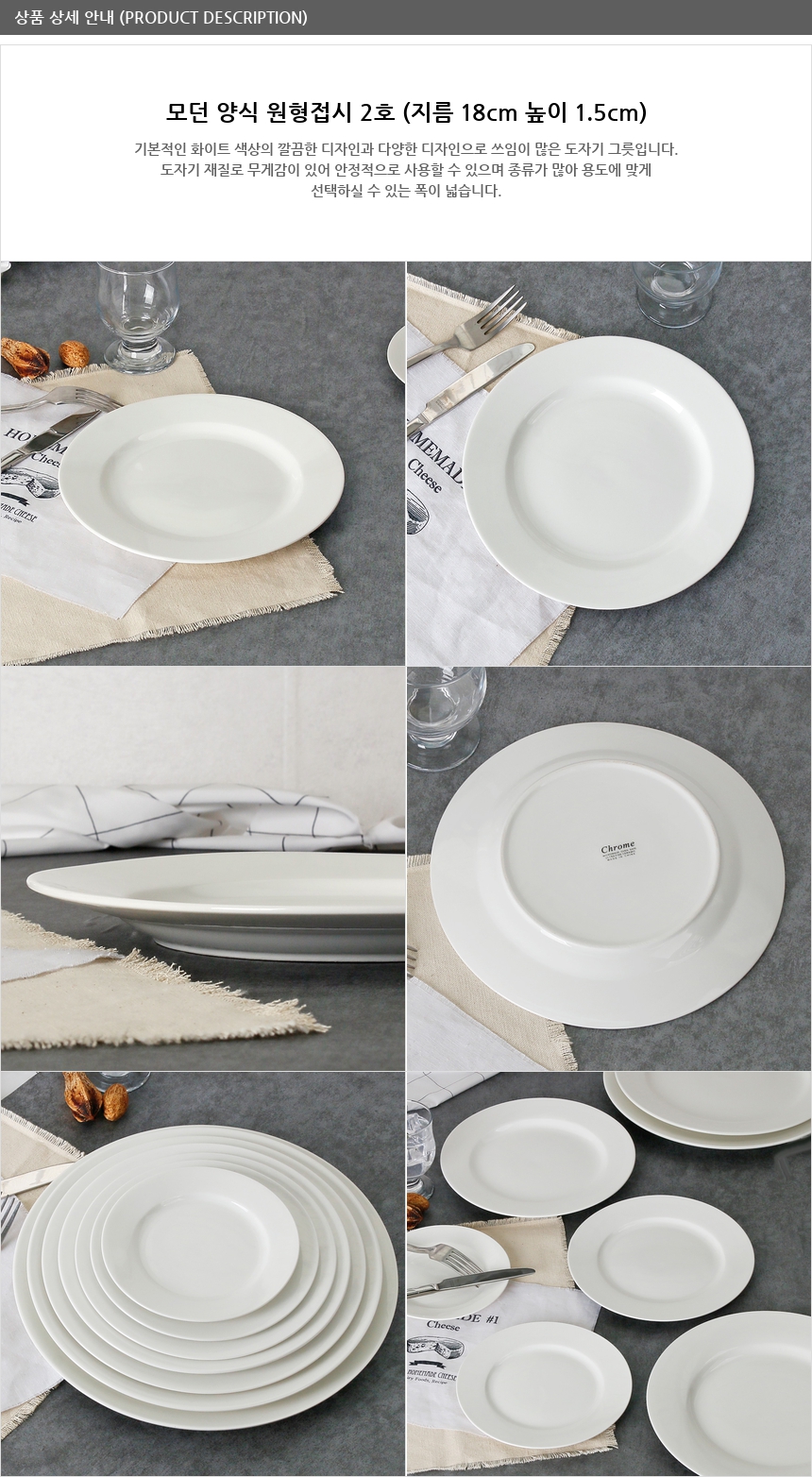 모던 양식 원형접시 2호 카페 화이트 도자기 뷔페 디저트 케이크 디너 스테이크 접시 그릇