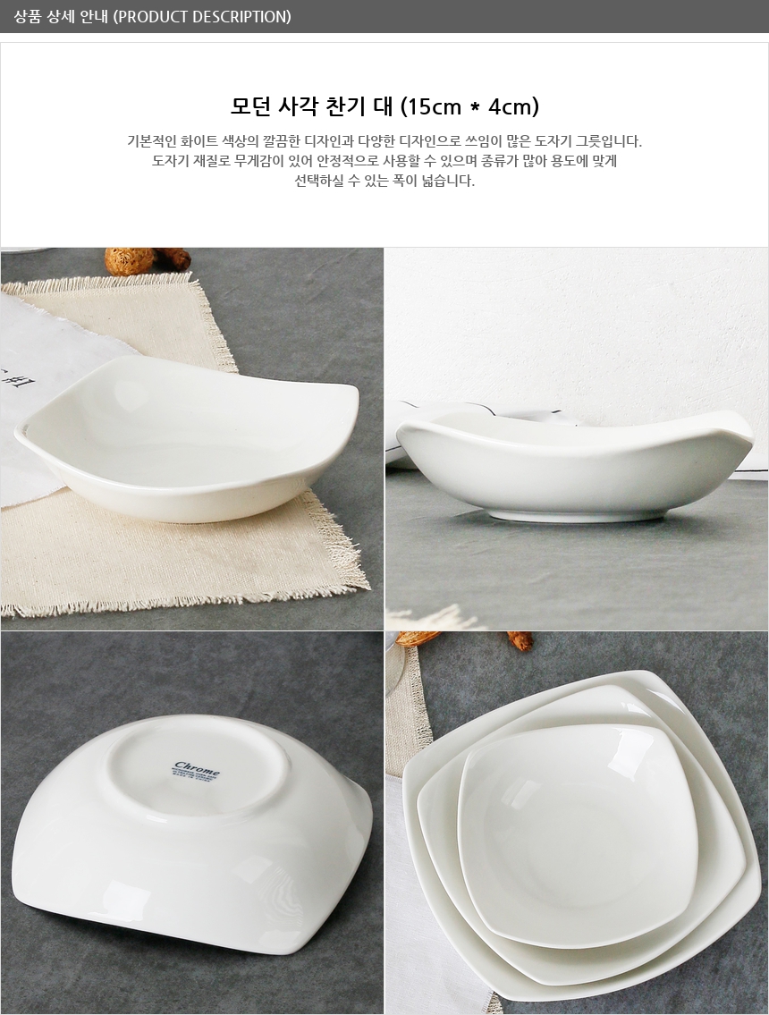 모던 사각 찬기 대 화이트 도자기 반찬 그릇 접시 앞접시