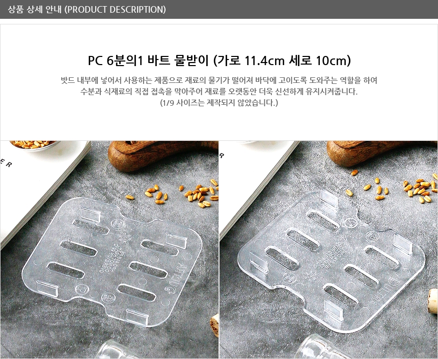 PC 바트 드레인 6분의1 밧드 플라스틱 투명 식당 업소용 주방용품 반찬통