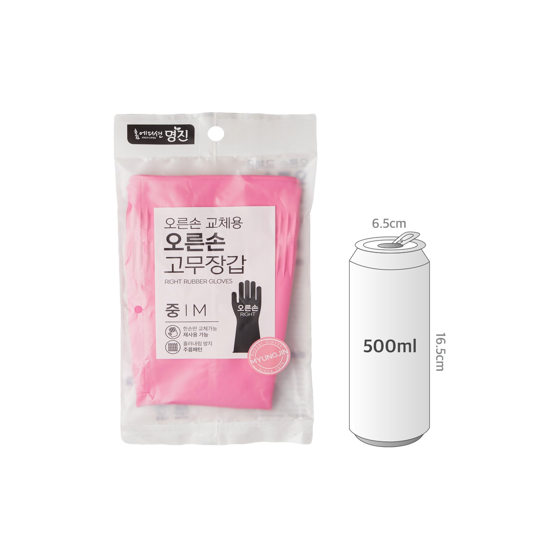 자주 찢어지는 고무장갑, 매번 한 세트씩 사기 번거로우셨다면 명진 오른손 고무장갑을 만나보세요. 한쪽에만 구멍이 날 때 필요한 짝만 교체할 수 있는 경제적인 고무장갑이에요. 유연하고 신축성이 좋은 고급 라텍스 소재로 제작하여 식품 조리, 욕실 청소, 설거지 등에 두루두루 사용하기 좋답니다. 미끄럼 방지 패턴 덕분에 기름기나 물기가 있는 접시를 닦을 때도 안심하고 사용할 수 있죠.