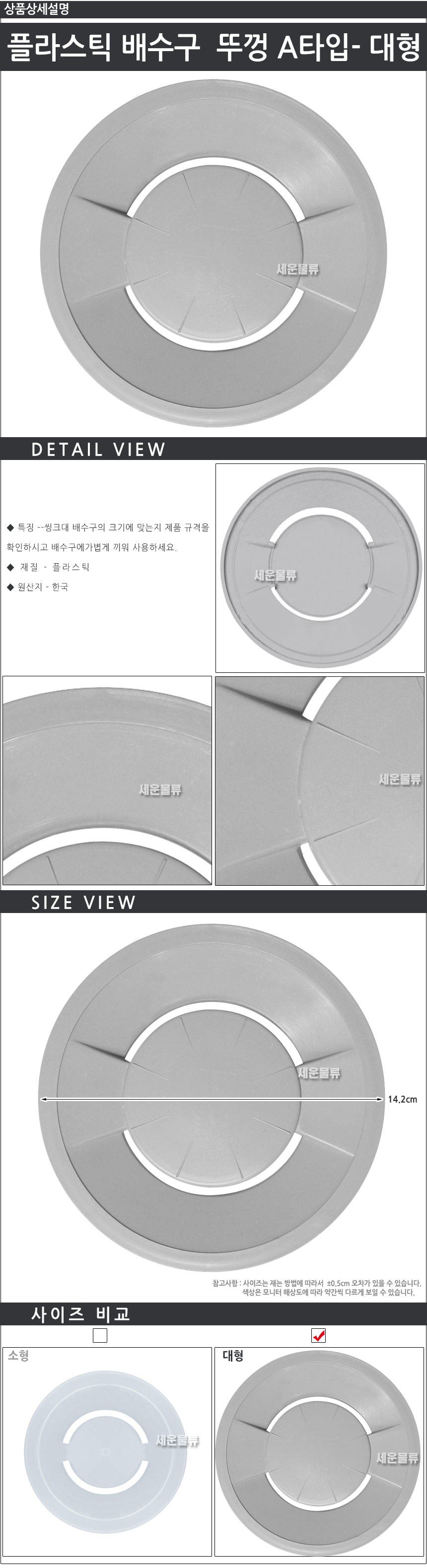 배수구캡 (플라스틱 배수구 뚜껑 A타입-대형) 씽크망