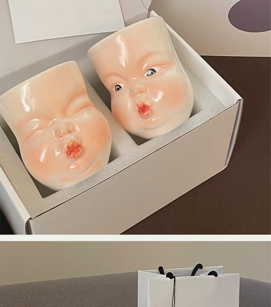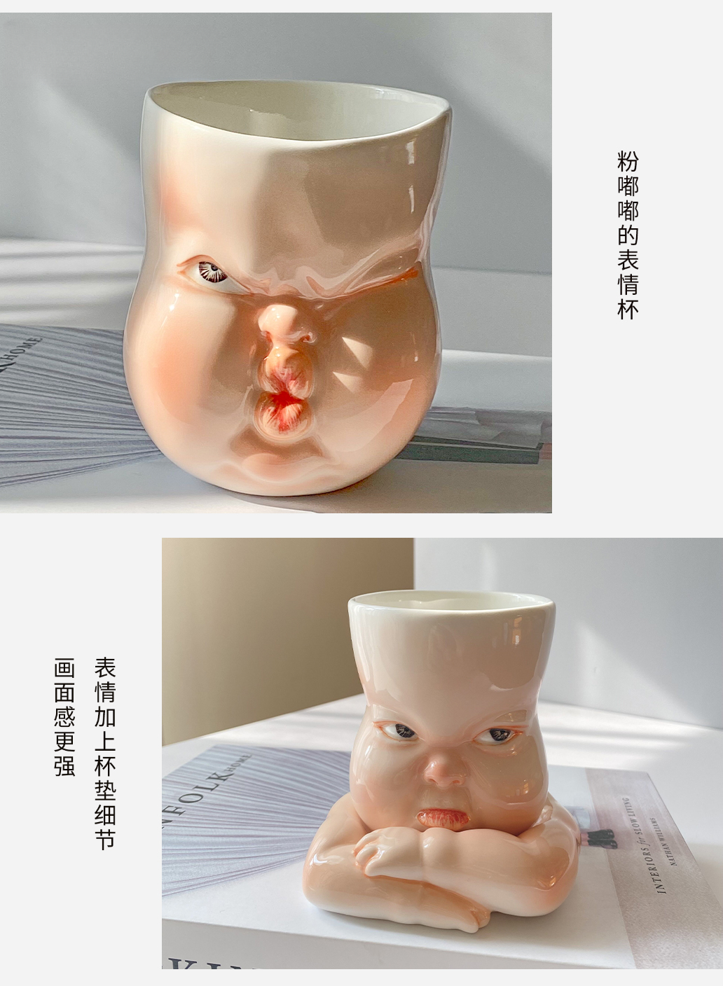 짖궂은 얼굴 표정 컵 세라믹 머그 장식 커피 생일 선물 도자기 머그잔 집들