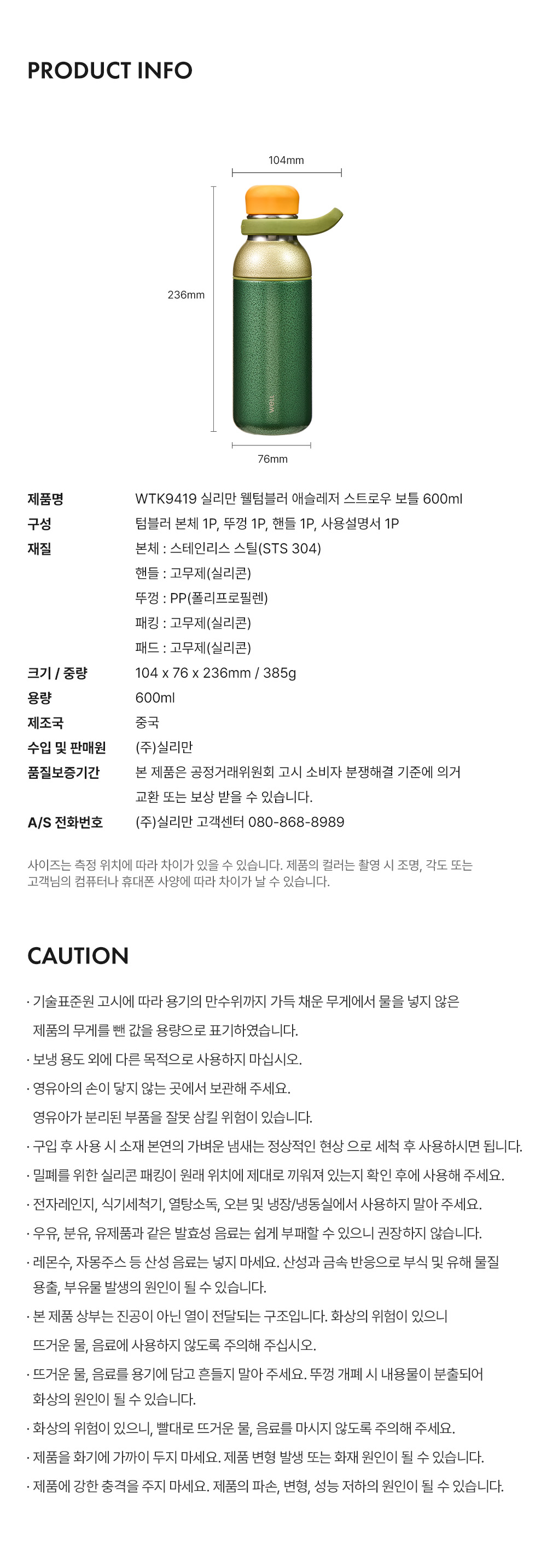 실리만 웰텀블러 애슬레저 스트로우 보틀 600ml 카모그린 WTK9419