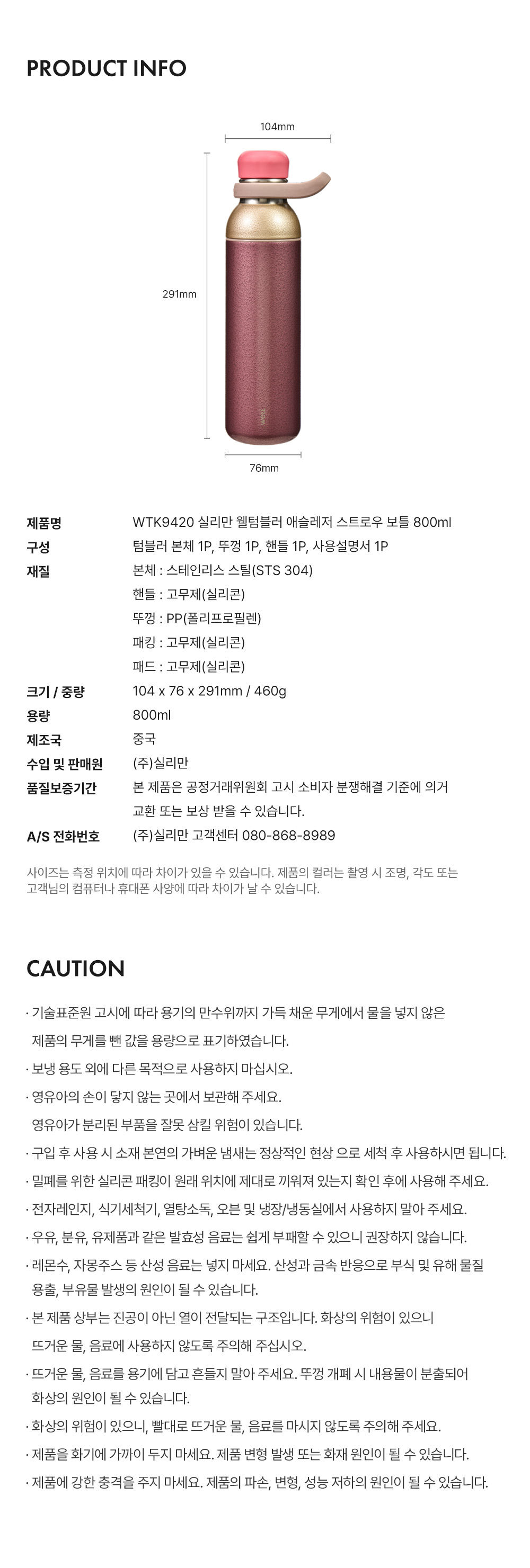 실리만 웰텀블러 애슬레저 스트로우 보틀 800ml 애쉬플럼 WTK9420