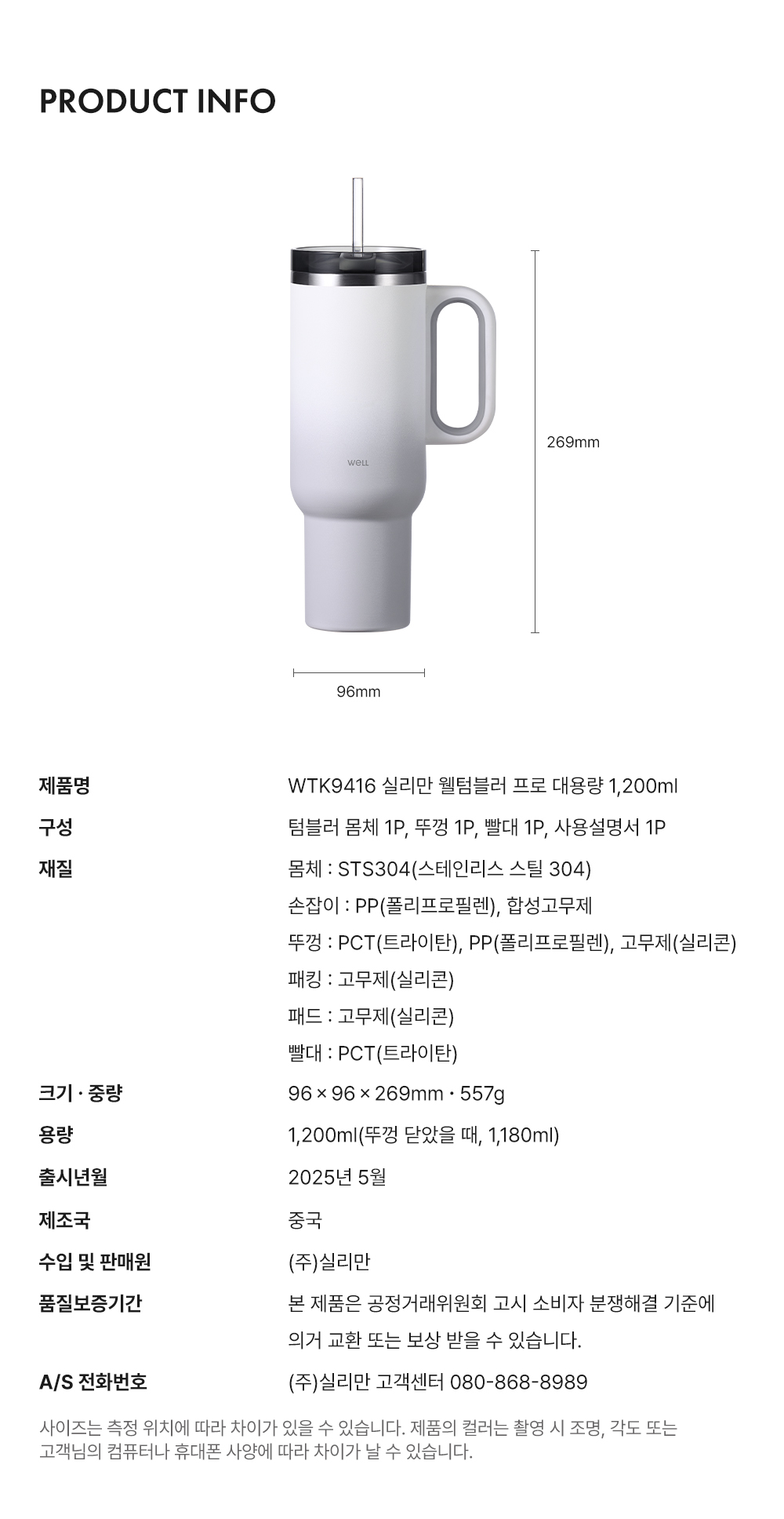 실리만 웰텀블러 프로 대용량 1200ml WTK9416