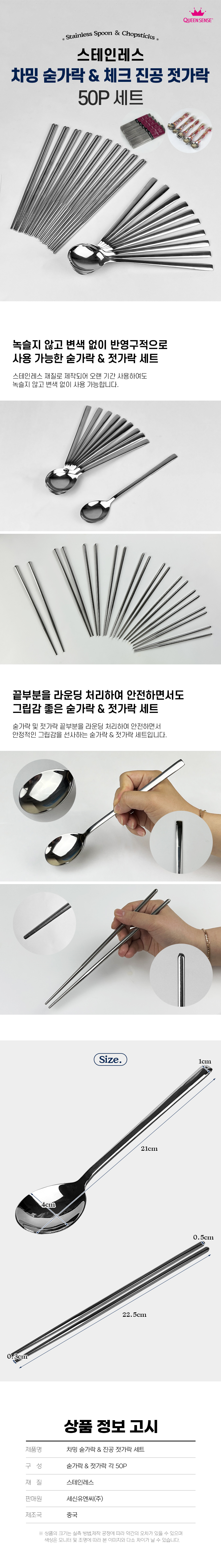 퀸센스 스텐 업소용 대량 구내 식당 가게 급식 숟가락 젓가락 가벼운 민자 수저 세트 50인용