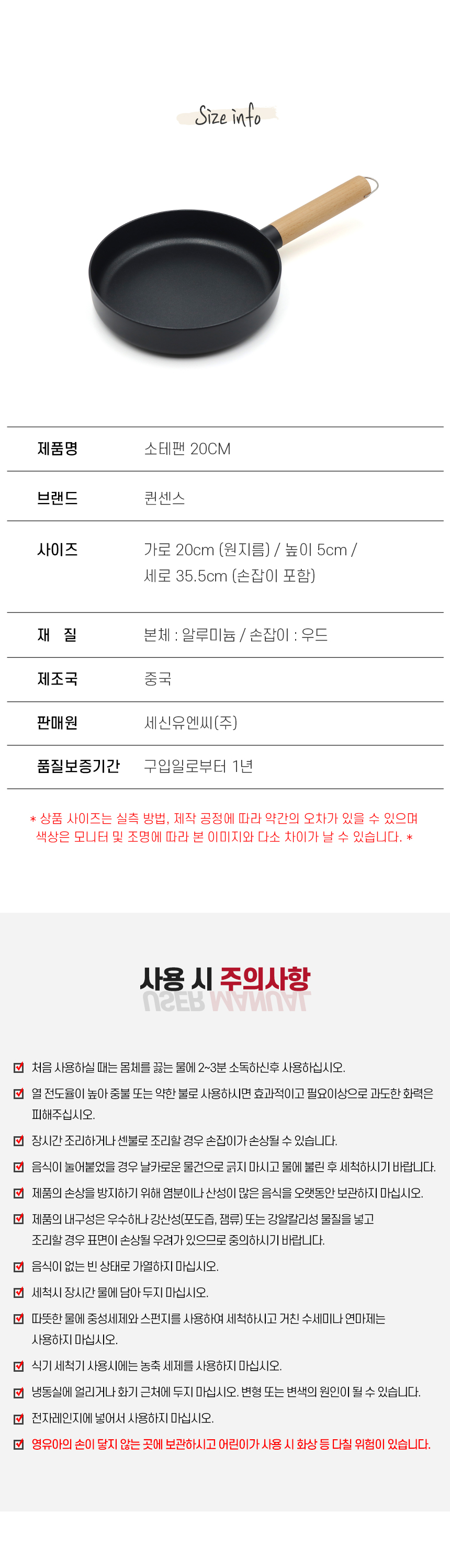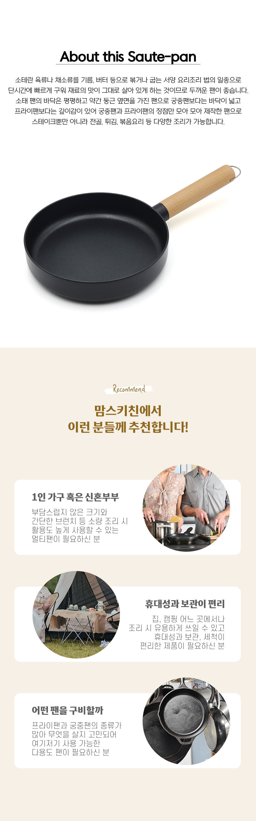 인덕션 IH 겸용 다용도 깊은 스테이크 튀김 소테팬 1인 작은 후라이팬 20cm