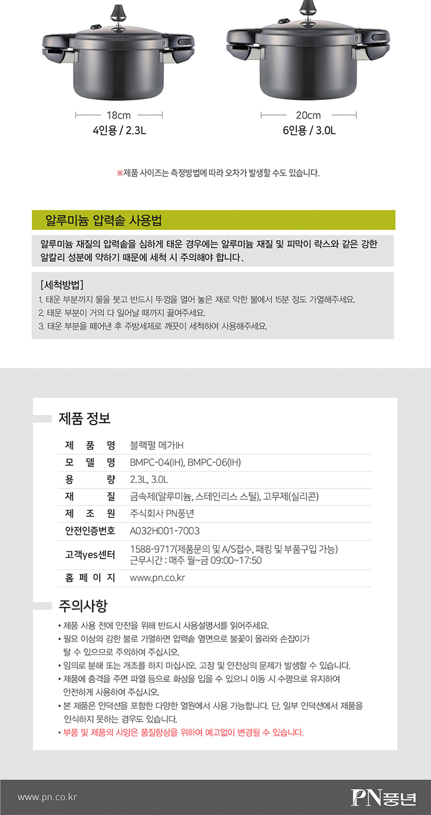 블랙펄 인덕션겸용 풍년압력밥솥 6인용 밭솥