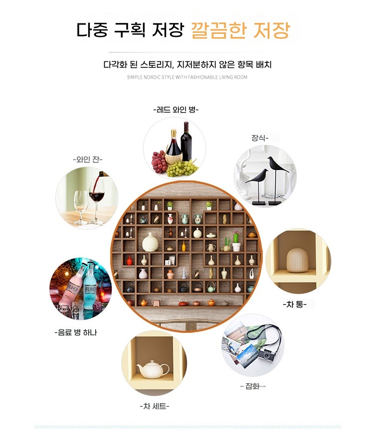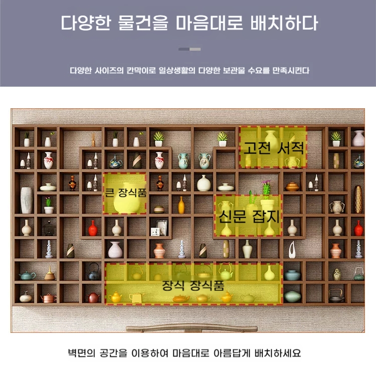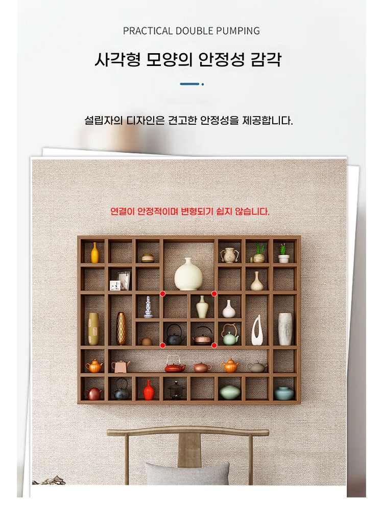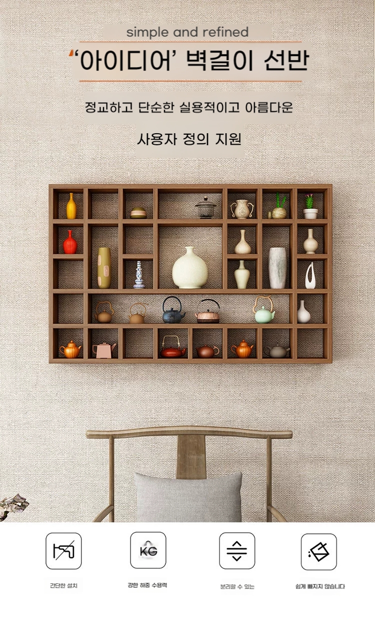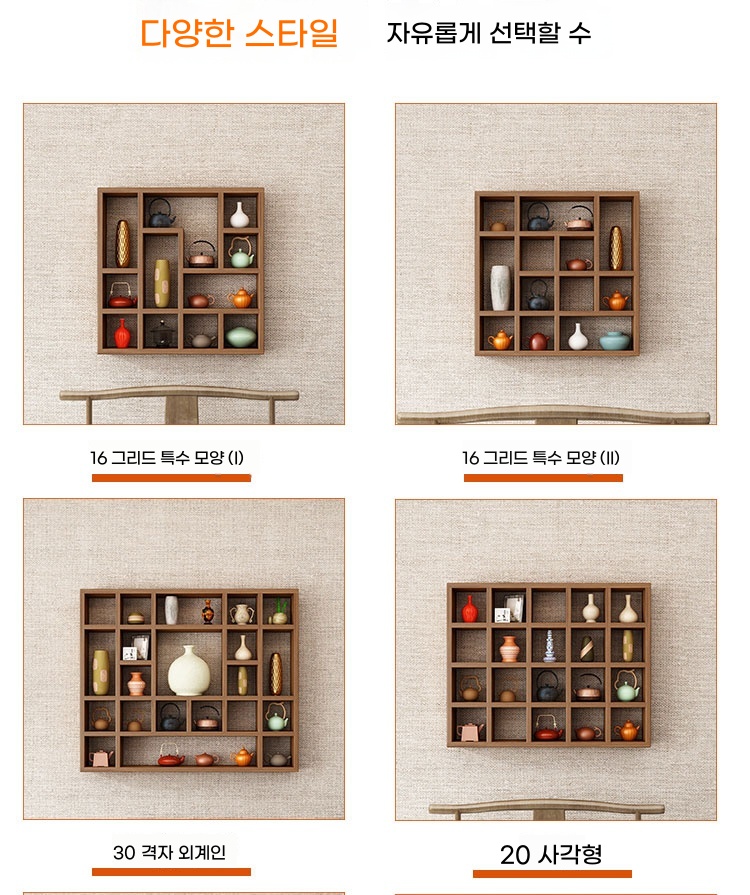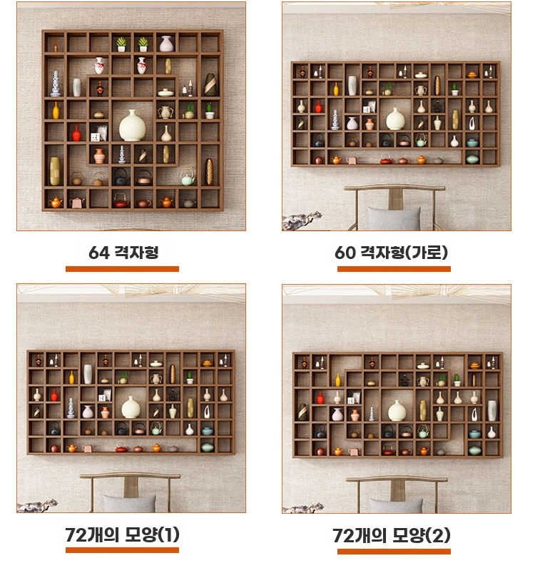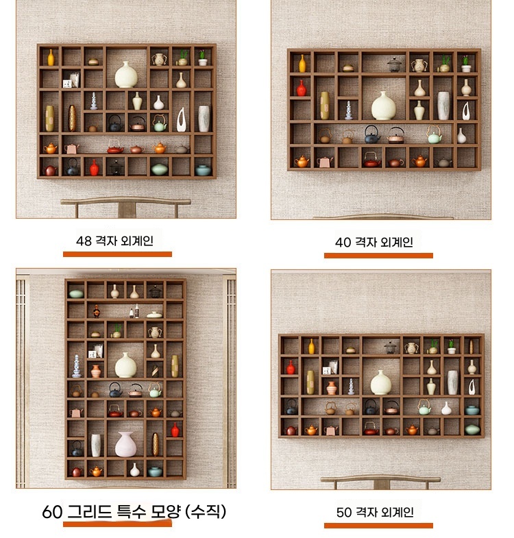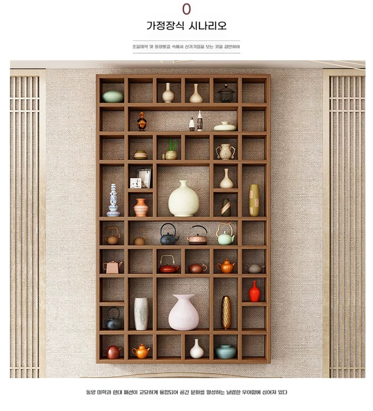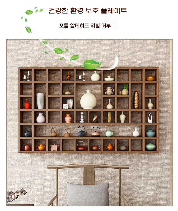벽걸이 나무 찻잔 찬장 오동나무 장식장 선반 다기장 진열대