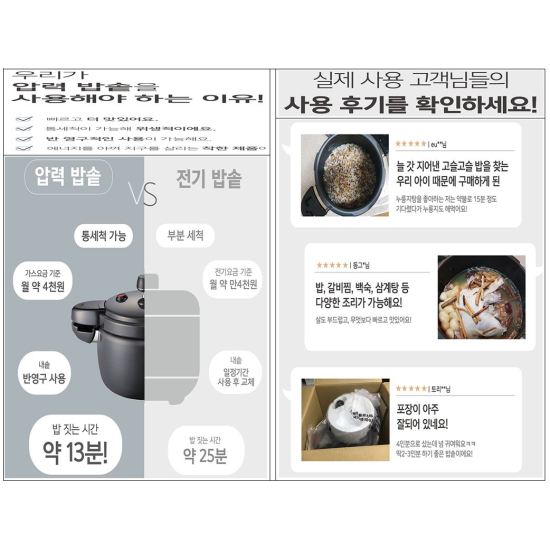 스텐 압력솥만큼 수명도 길고고장도 없으며, 밥맛도 좋아서 여전히