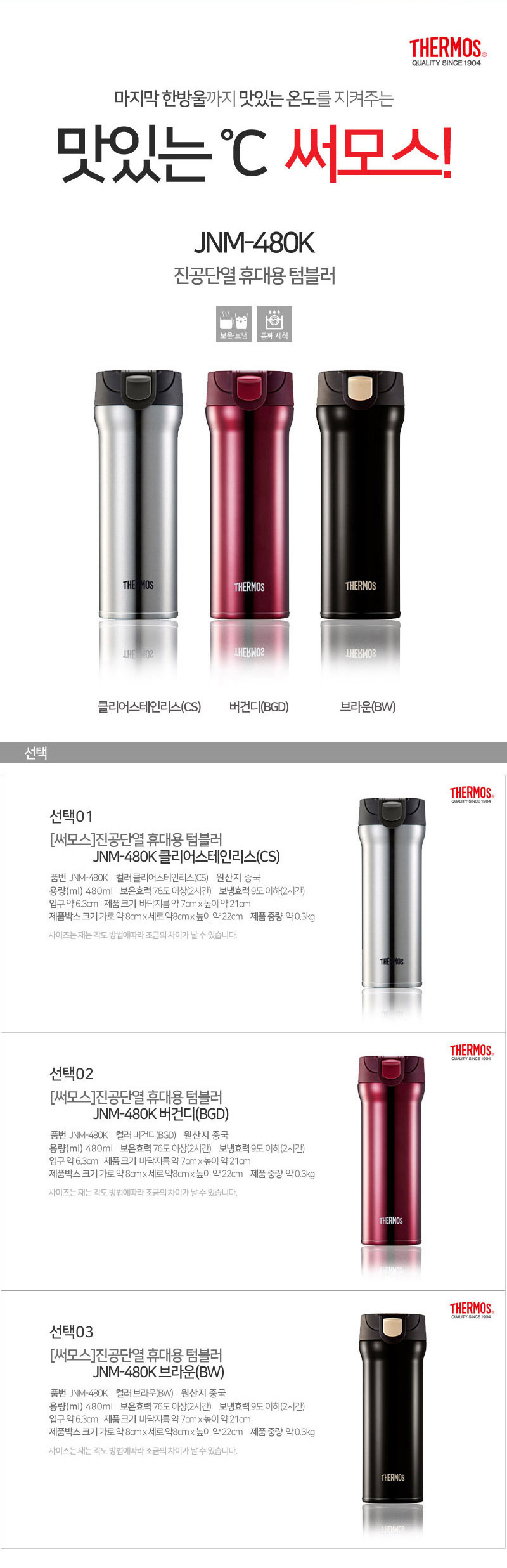 대표A/S센터 전화 | 써모스 진공단열 휴대용 텀블러 JNM-480K 480ml |