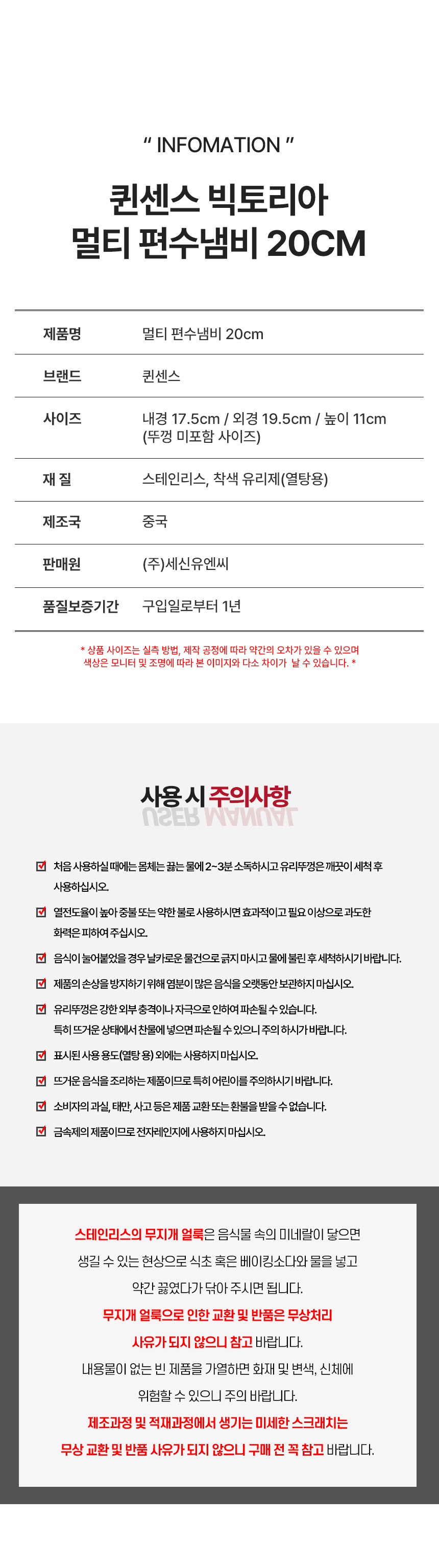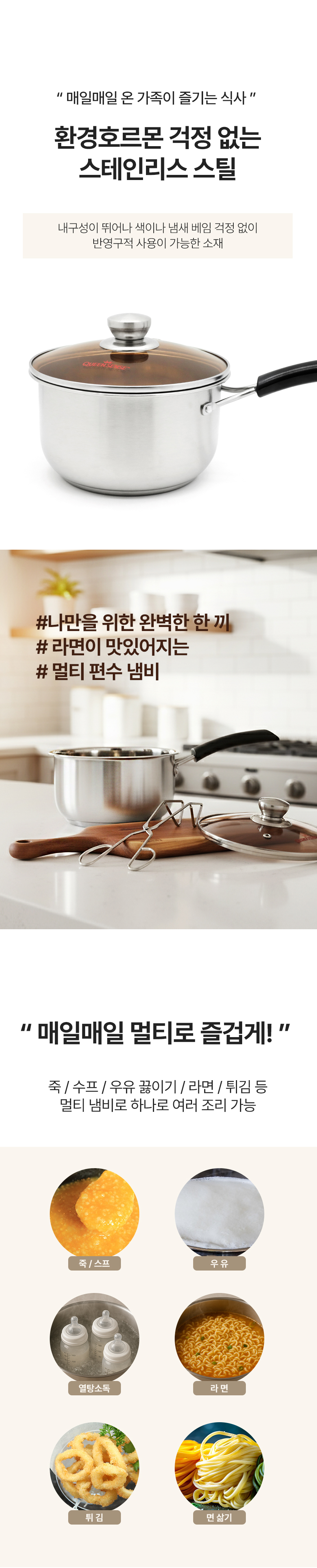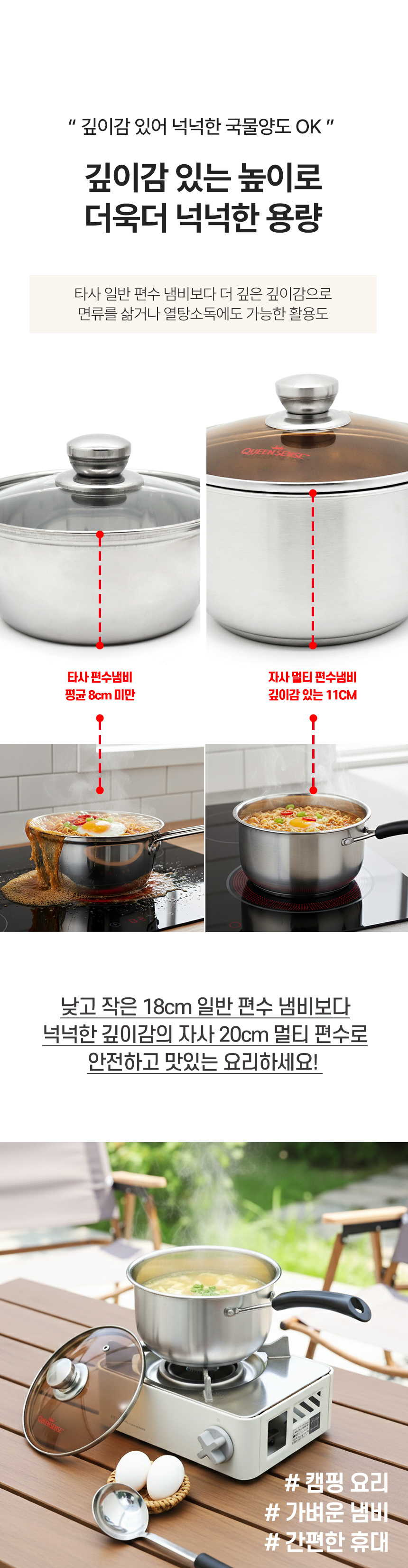퀸센스 스테인리스 IH 인덕션 겸용 멀티 쿠커 라면냄비 손잡이 편수 냄비 20CM