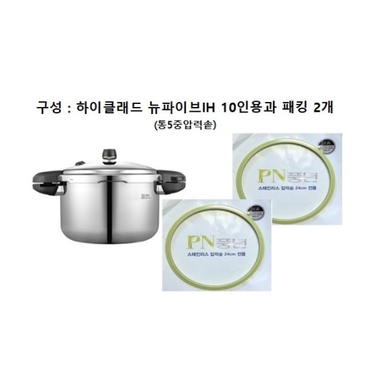 지금 보시는 제품은 통5중 압력솥 하이클래드 뉴파이브IH 10인용에 패킹이 2개 출고되는 상품입니다.