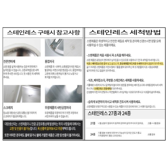 스텐 처음 사용시 연마제거 방법에 따라 닦으면 깨끗하게 닦이니 이점 고객님의 양해부탁드리며, 염려하시지 않으셔도 됩니다.