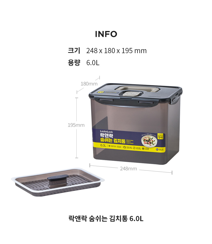 (2개세트)숨쉬는 김치통 6L (HPL827DBS2)