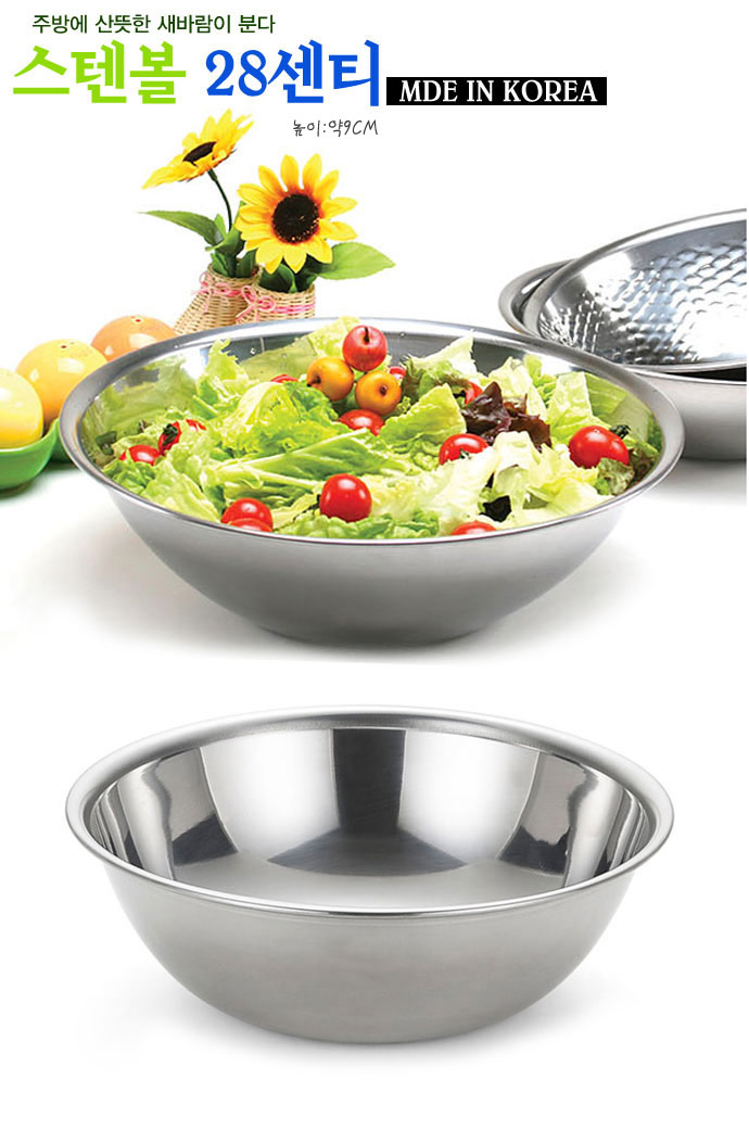 스텐볼 28cm -N 스텐바구니/믹싱볼/스텐볼/스댕볼/스테인리스볼/샐러드볼/대야/바구니/용기/다용도/빙수볼
