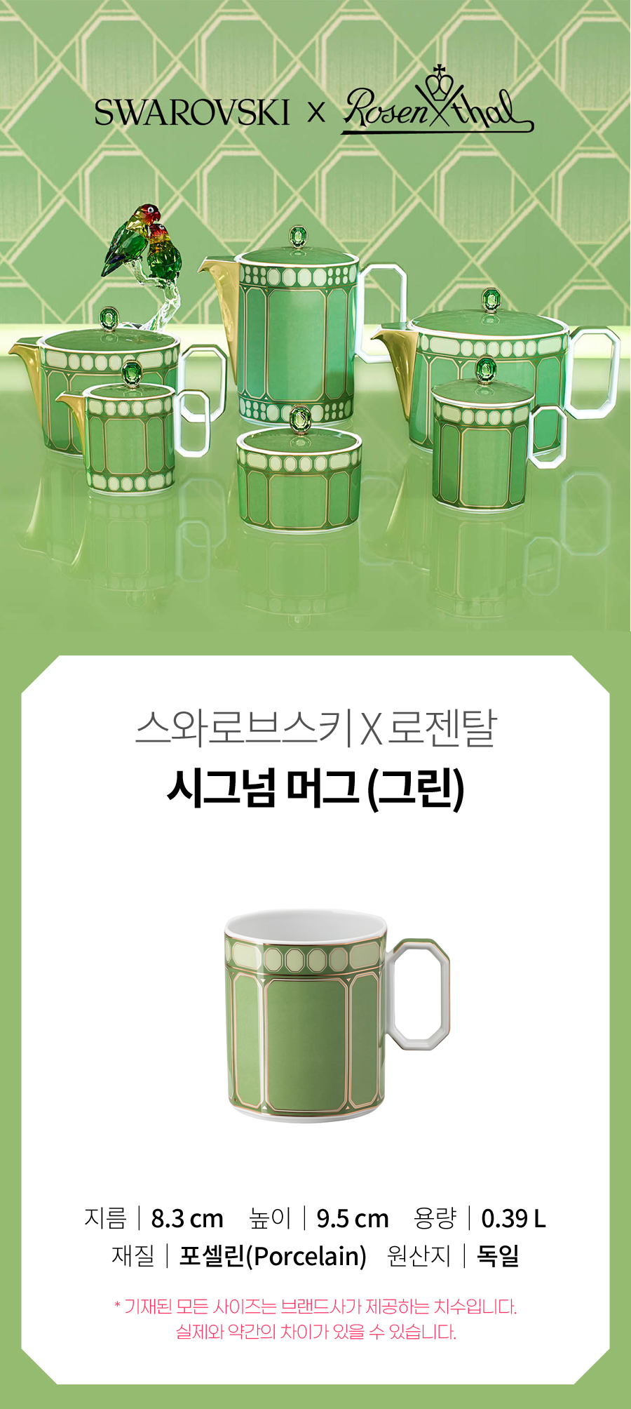 (롯데백화점)(로젠탈X스와로브스키) 시그넘 머그 390ml (그린)