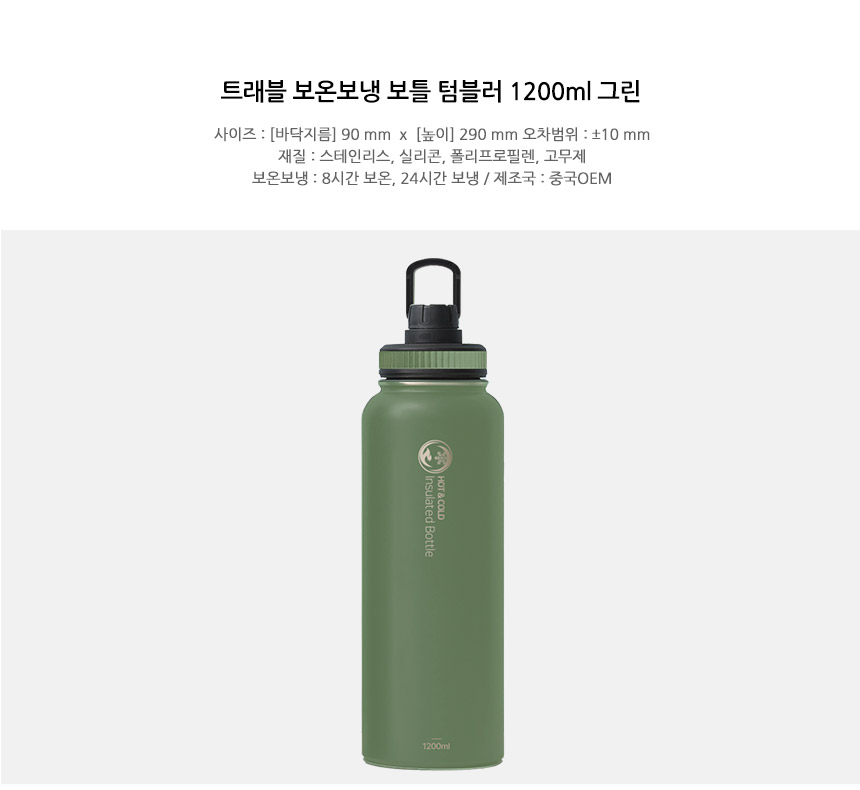 트래블 보온보냉 스텐 보틀 텀블러 1200ml 그린) 1P