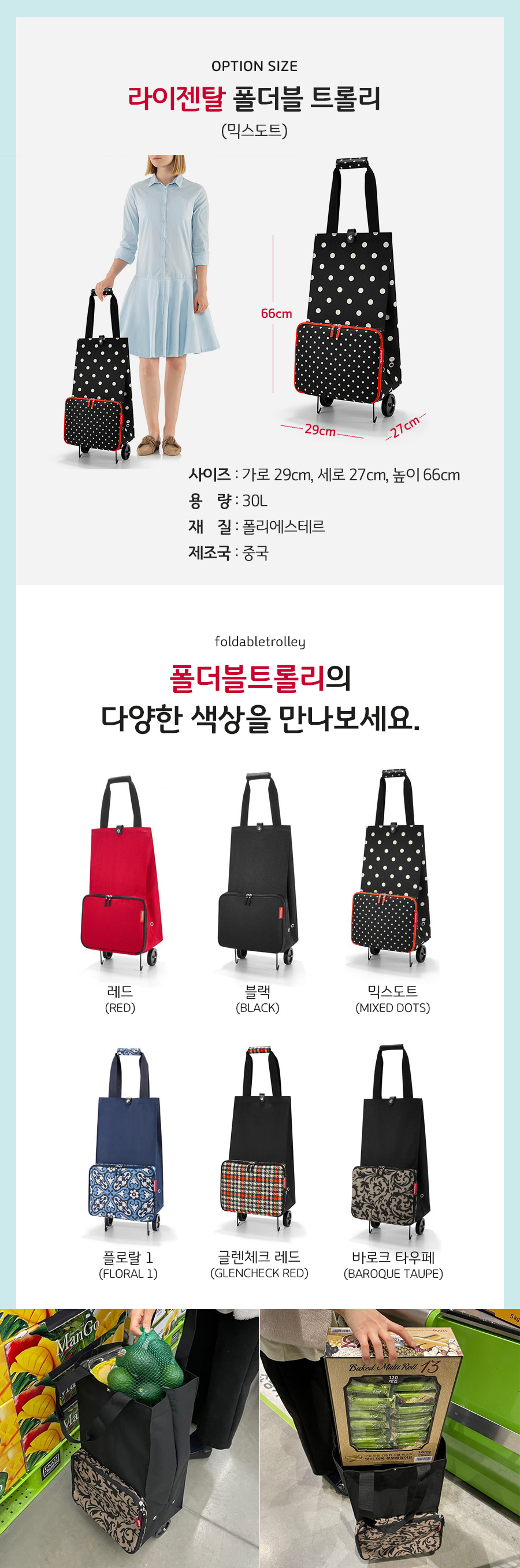 라이젠탈 폴더블 트롤리 접이식 장바구니 믹스도트 RSTHK7051