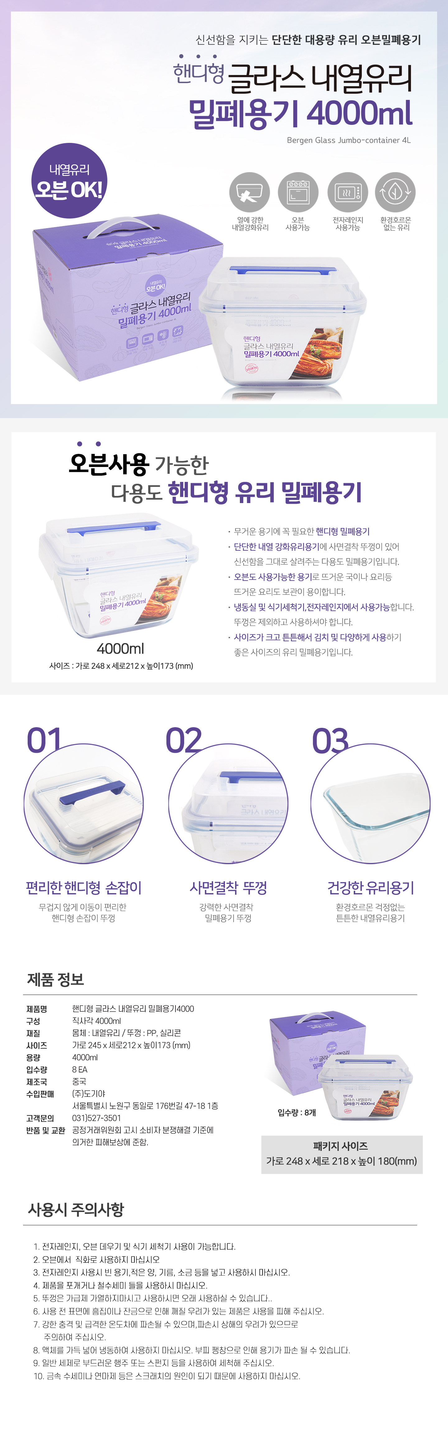 핸디형 글라스 내열유리 밀폐용기 4000