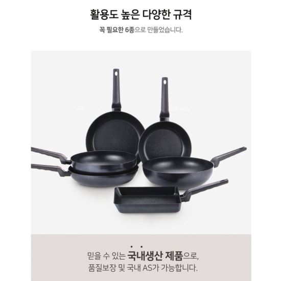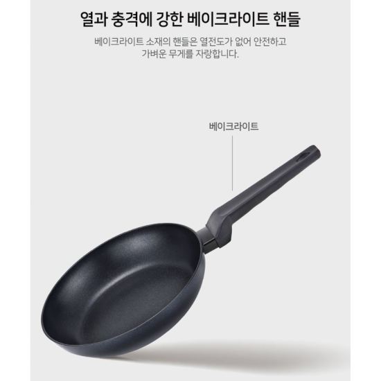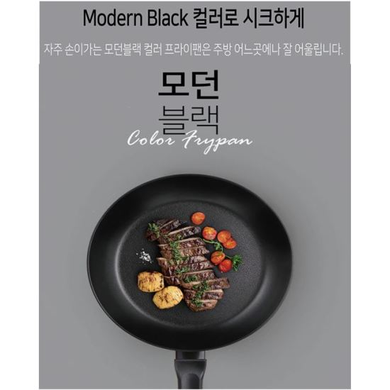 올 블랙으로 데일리 프라이팬으로 사용이 가능하며, 넌스틱 코팅으로 눌어붙음, 소량의 기름 사용이