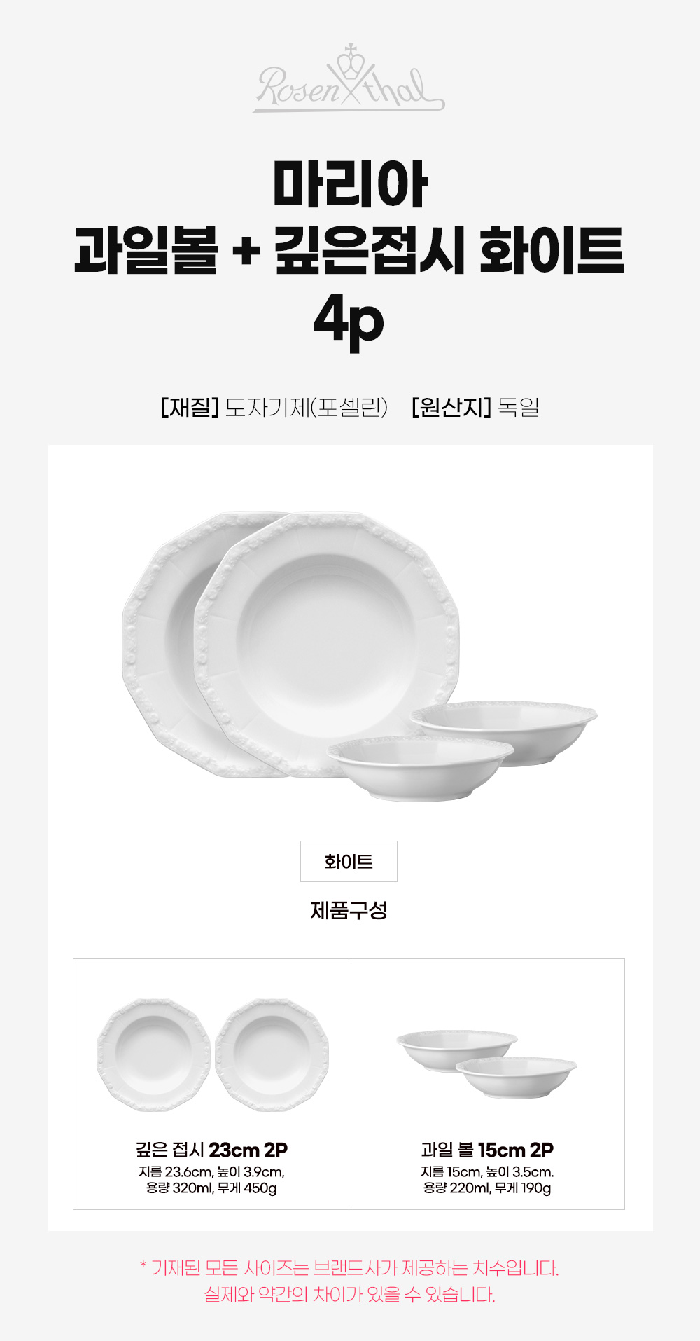 (롯데백화점)마리아 과일볼+깊은접시 화이트(2p)