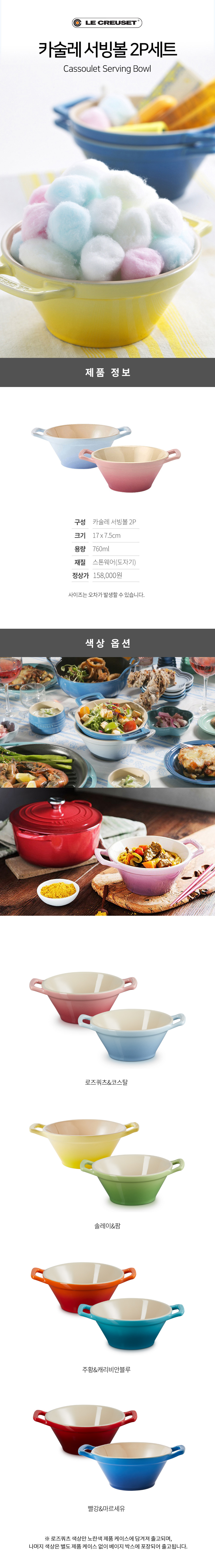 정가158000원 레인보우 카술레 서빙볼 2P세트
