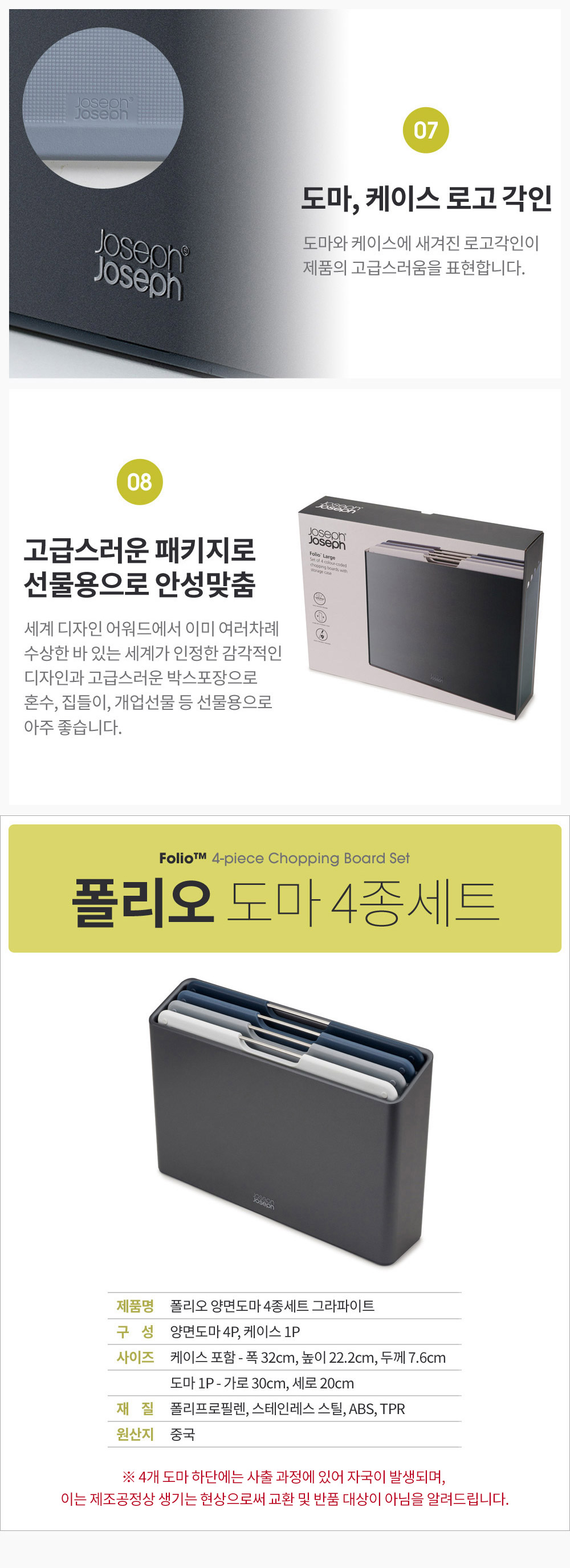 (롯데백화점)폴리오 양면도마 4종세트 그라파이트