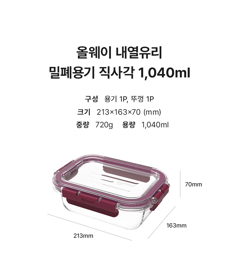 실리만 올웨이 내열유리 밀폐용기 직사각 1040ml WGK5106