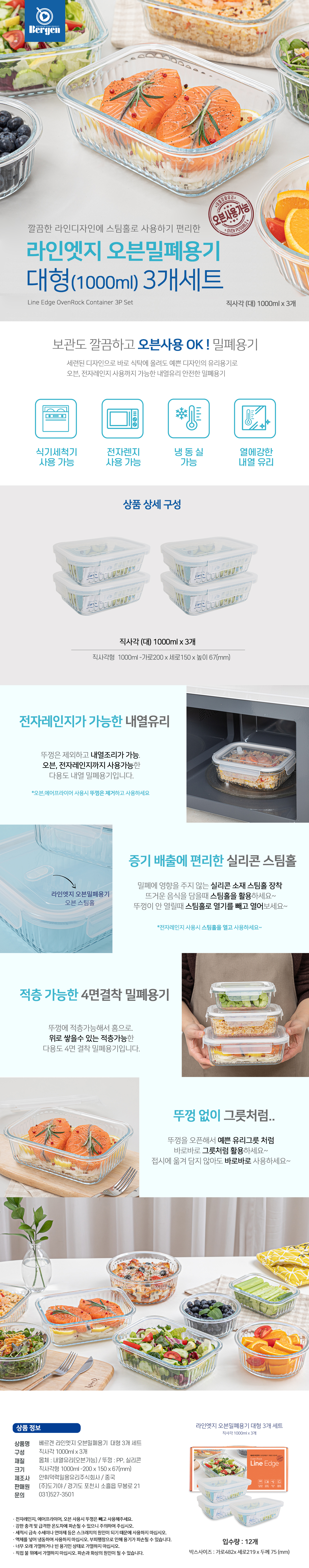 라인엣지 밀폐용기 대형 1000ml 3개 세트