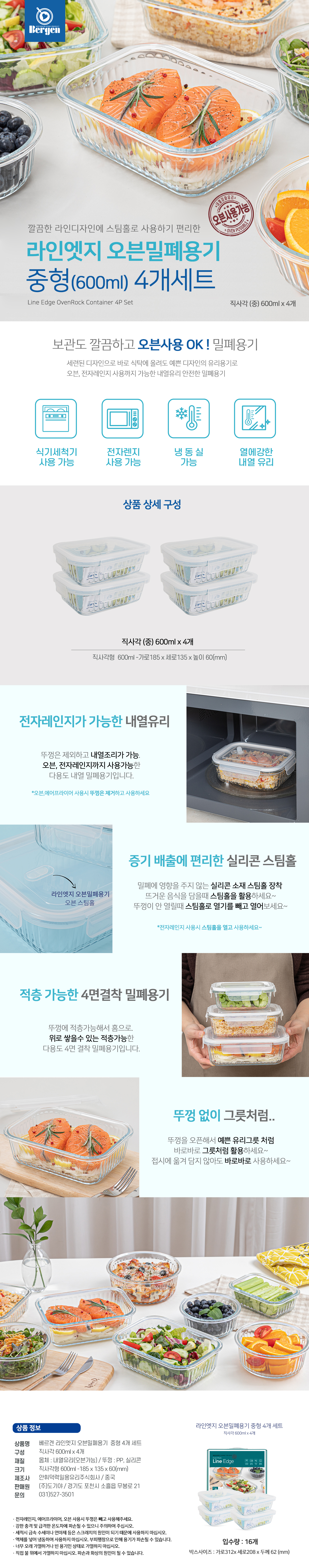 라인엣지 밀폐용기 중형 600ml 4개 세트