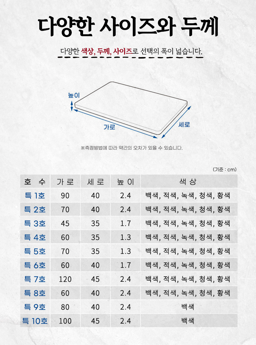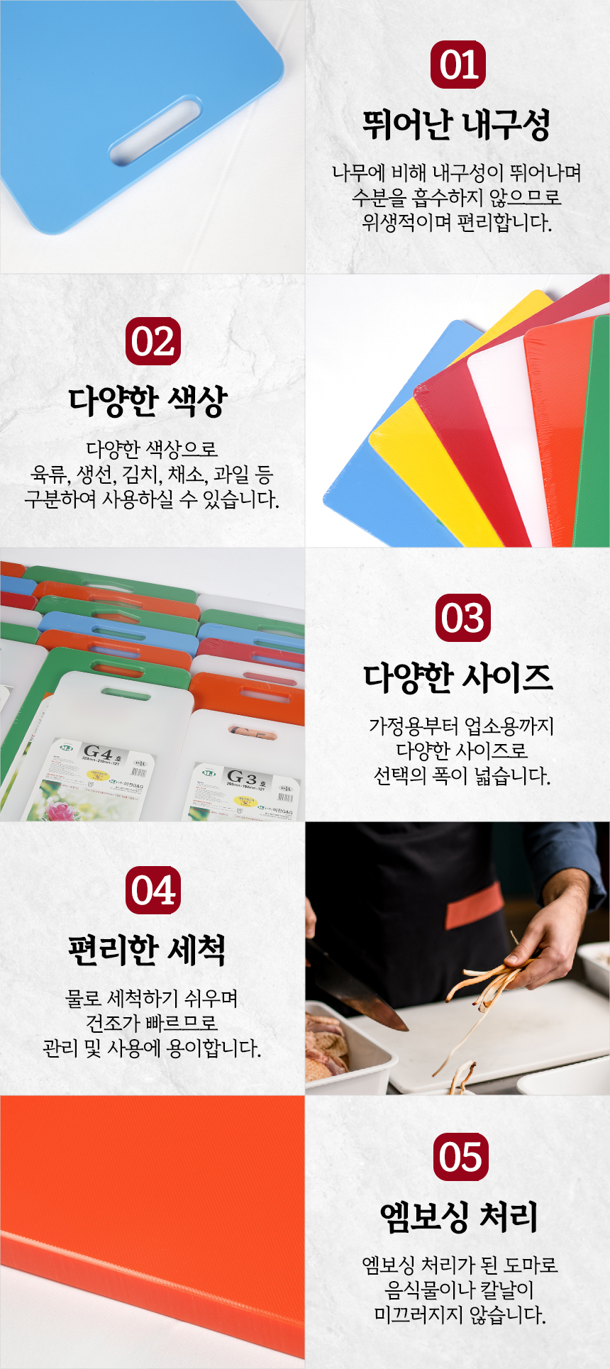 미진 업소용 도마 특3호 45 x 35cm 위생도마 칼라