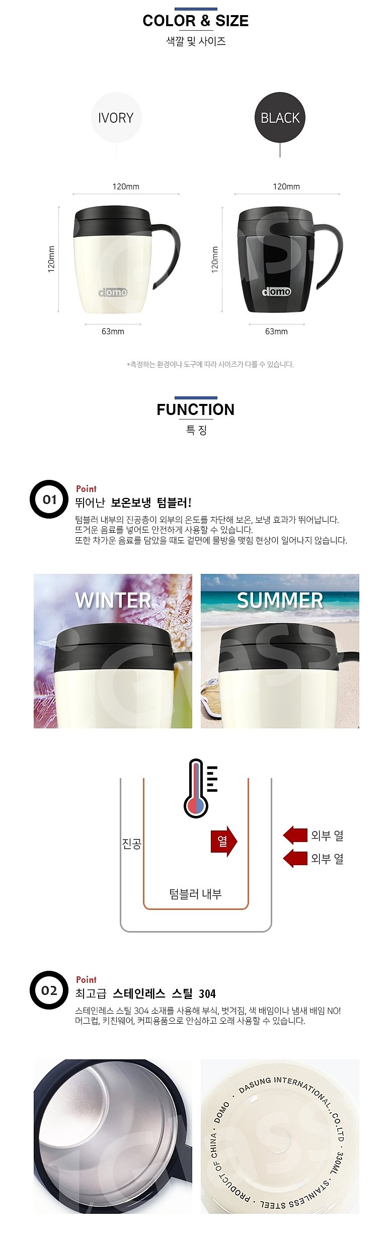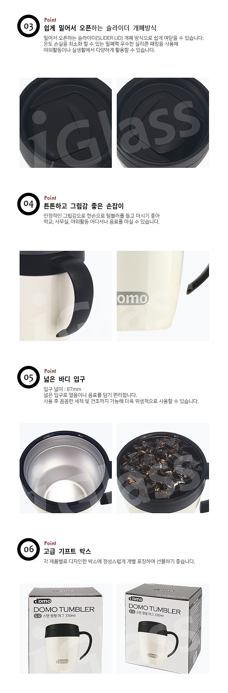 도모 스테인레스 손잡이 원형 텀블러 (아이보리) 330ml