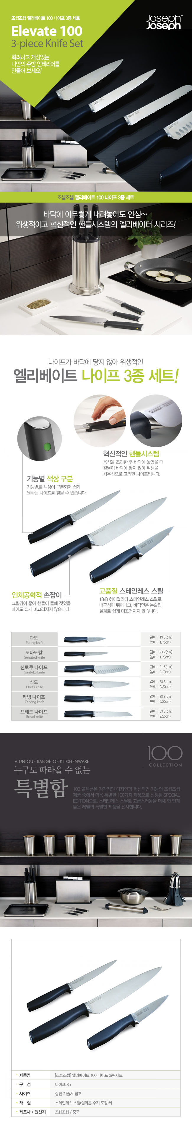 (롯데백화점)엘리베이트 나이프 3종 세트(스틸) 100 COLLECTION
