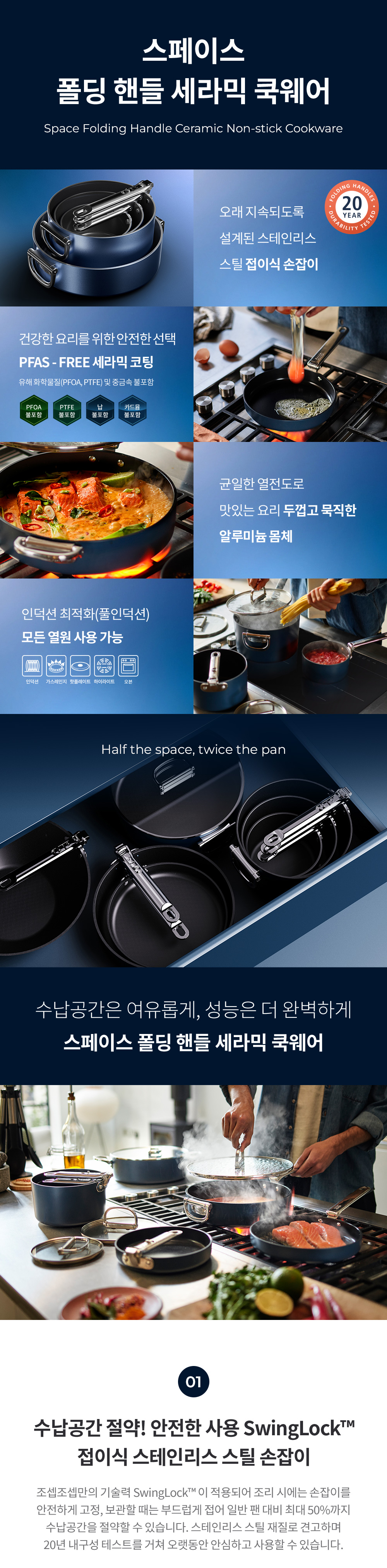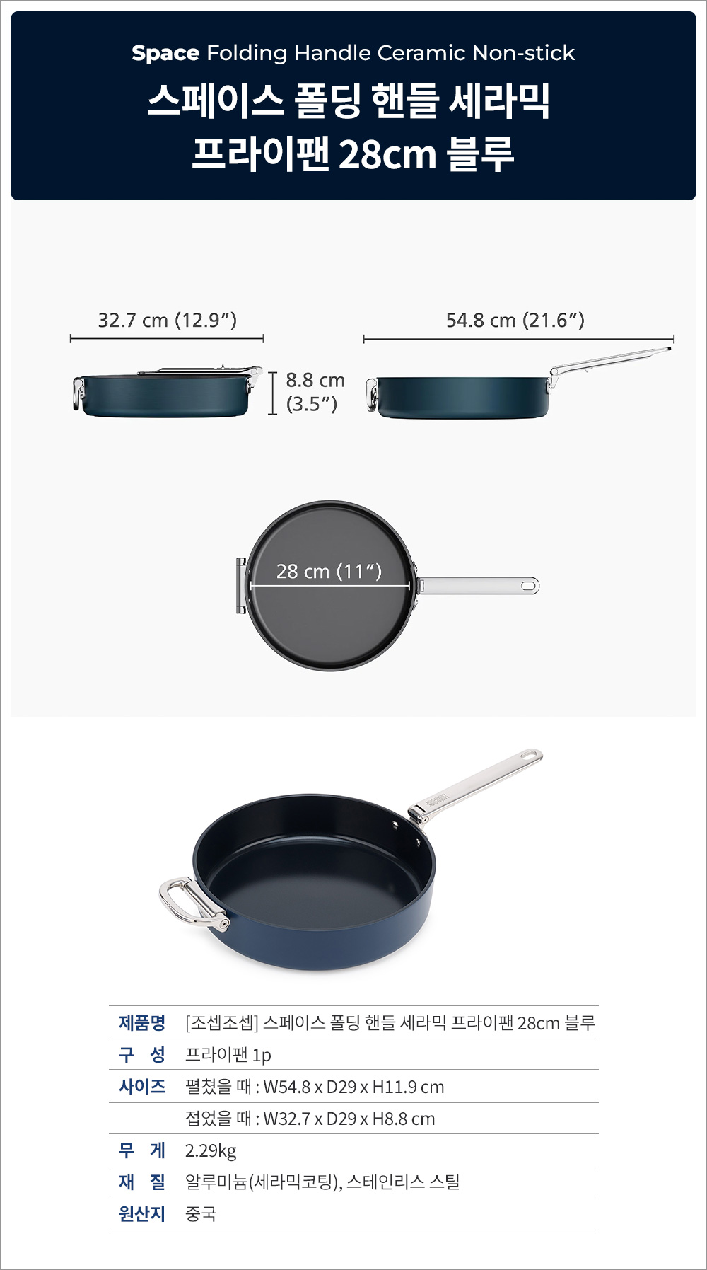 (롯데백화점)스페이스 폴딩 핸들 세라믹 프라이팬 28cm 블루