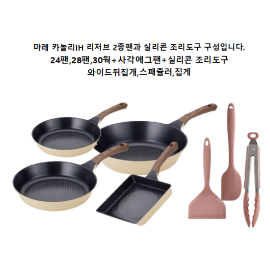 주문하시면 마레 카놀리IH 리저브 24팬+28팬+30웍+사각에그+실리콘조리도구3종(와이드뒤집개,스패츌러,집게)이