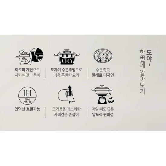 도야냄비경우 몸체와 손잡이가 달라서 뜨겁지 않고 음식이 눌러붙지 않으며, 관리, 설겆이가 편하고